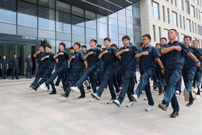 炎炎日正午,灼灼火俱燃,刚刚入职报到的山推新青年开启了为期一周的军训拓展。口令铿锵有力、眼神坚毅认真、步伐整齐划一,汗水浸湿工装的那一刻,才懂得军人保家卫国的不易和伟大。稍息、立定、齐步走,新员工们气宇轩昂、意气风发;向左转、向右转、向后转,迈着铿锵的步伐,迎接快速成长的每一天。