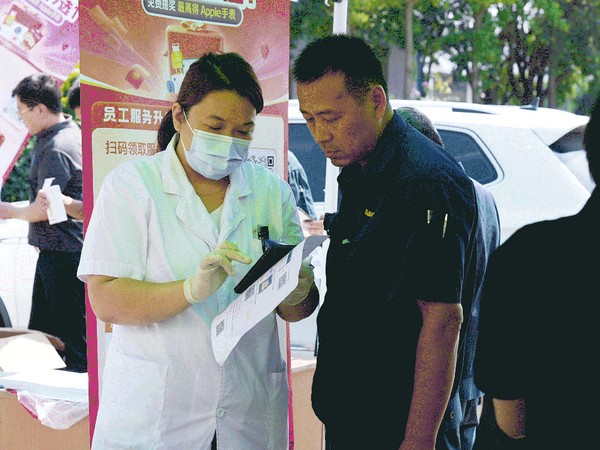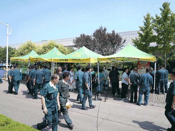 随后的现场答疑环节,工作人员向职工发放印有政策要点和操作流程的宣传手册,提供“一对一”咨询服务,确保职工带着疑问来、揣着明白走。义诊服务点前排起长队,医护人员为职工提供血压测量、视力检测、健康问诊等服务并给出专业指导。全程人气高、氛围热烈,获广大职工积极响应与好评。