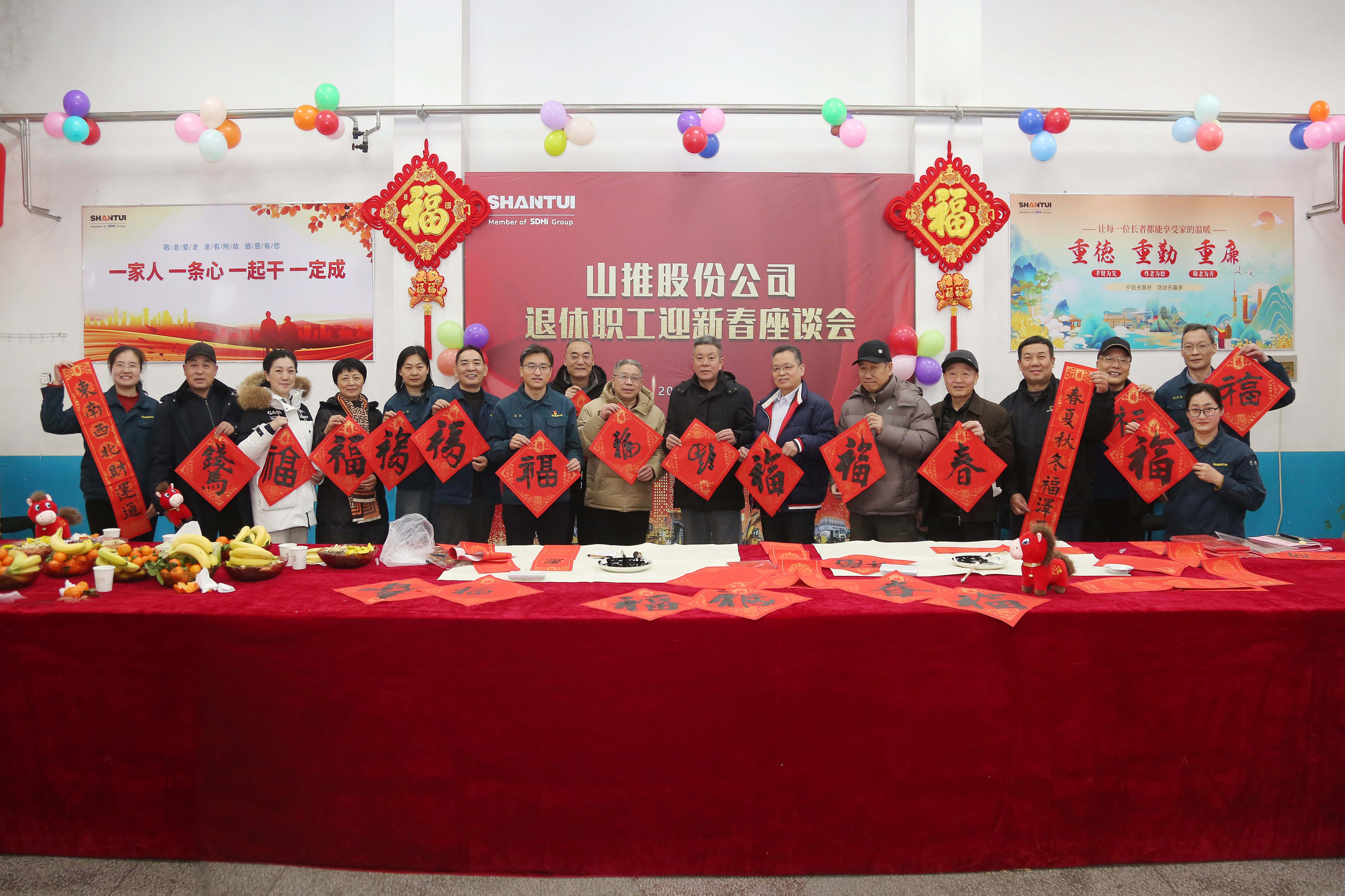 活动现场特设新春送福暖心环节,公司为退休职工送上寓意吉祥的春联、福字与精心准备的慰问品,传递浓浓温情。老同志们手持春联、心怀暖意,对公司长期以来的关心与牵挂致以衷心感谢。大家一致表示,将始终心系山推、情系企业,继续发挥余热、积极建言献策,一如既往地关心、支持公司各项事业发展。