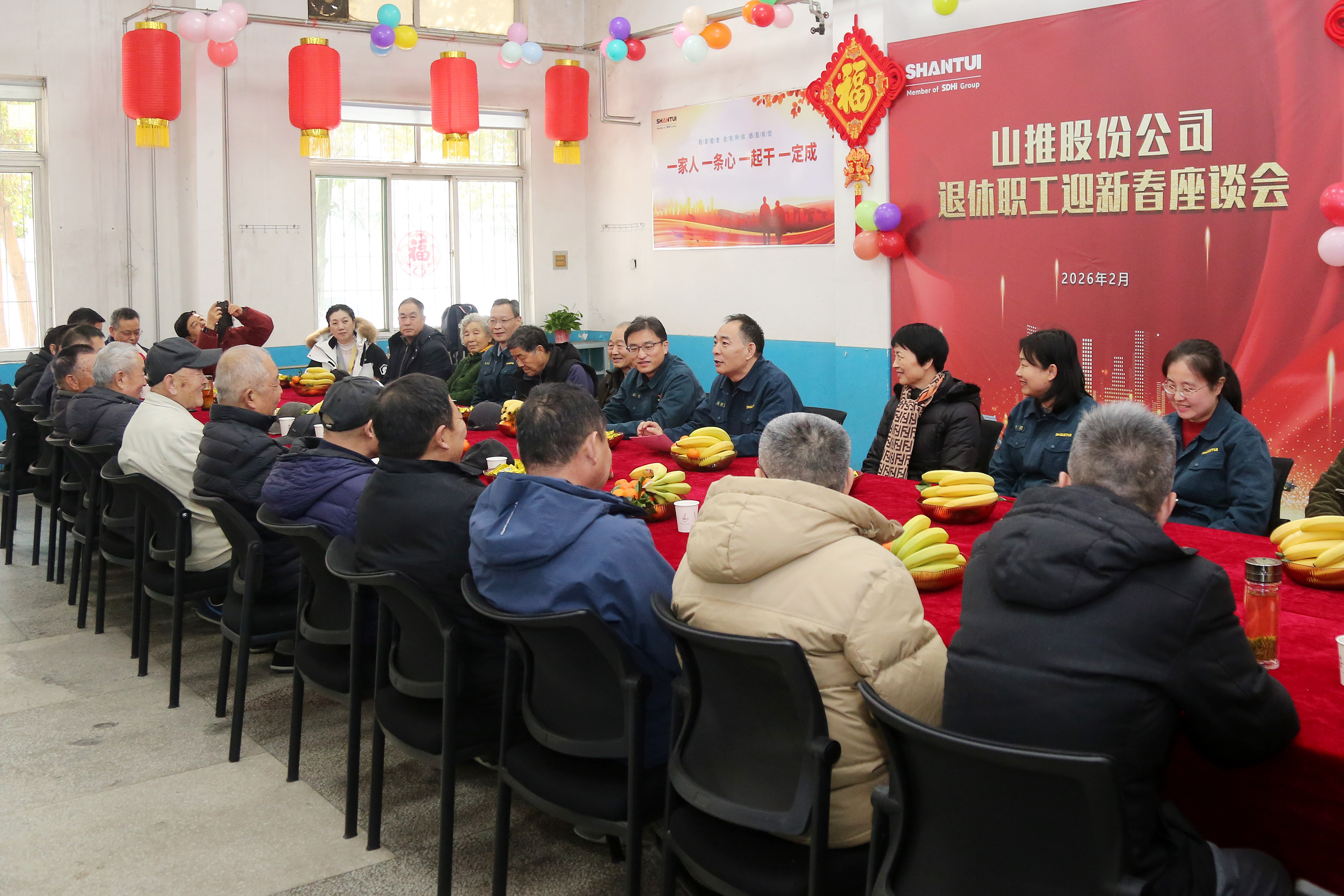 2026年小年佳节,山推举办“情暖桑榆 喜迎新春”退休职工座谈会,公司党委副书记、总经理张民,党委副书记、工会主席马景波出席活动,与各位退休老职工欢聚一堂,共忆七十余载峥嵘岁月,共绘企业发展宏伟蓝图,共迎丙午马年新春佳节,把公司最真切的关怀与最诚挚的祝福送到每一位前辈身边。