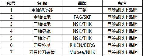 6. 项目概况:对立式加工中心的主轴轴承及主轴驱动器、三轴导轨及丝杠进行更换,对系统进行修复,对目前设备加工精度不合格进行修复、改善开机速度过慢、网卡无法联网的问题。维修更换部件要求: