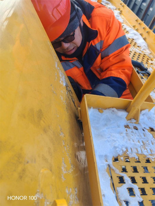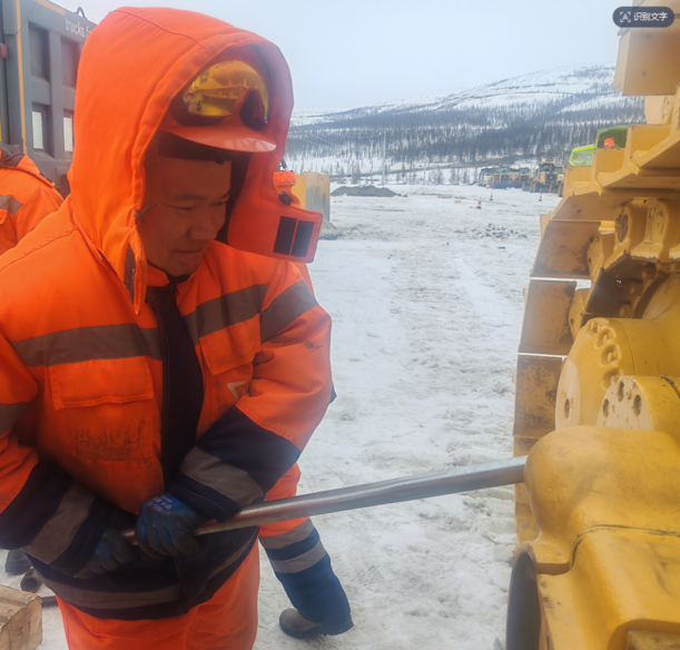 在北极圈的凛冽寒风中,肆虐的风雪如同一头凶猛的巨兽,疯狂的撕扯着一切。气温低至-40℃。呼啸的狂风裹挟着冰粒,让每一次呼吸都仿佛变成了对生命的挑战。然而,就在这片看似毫无生机的冰原上,山推的三人服务小组-蔡福利、褚伟营、冯兆轩,正以钢铁般的意志和紧密无间的协作,书写着“一家人、一条心、一起干、一定成”的动人篇章。