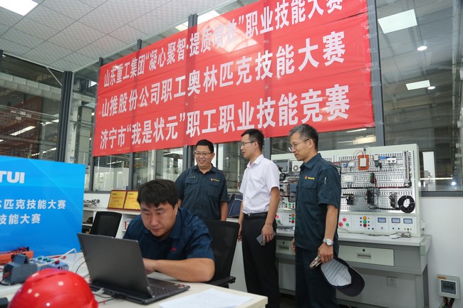近日,由公司承办的首届集团技能大赛电工、叉车工赛项在传动分公司、二号主机厂顺利闭幕,共有来自潍柴、重汽、山重建机的52名选手前来参赛。与此同时,公司钳工、检查工、信息技术、焊接、涂装7个赛项的“千人百场”岗位练兵活动同时开赛。活动现场,各路技能高手同台竞技、一展风采,生动诠释了集团“不争第一就是在混”的激情文化。