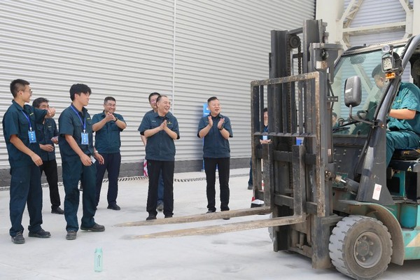 本次赛事设置三个限时项目。“厚积薄发”(叉车绕障叠托盘)通过“技术+心理+时间”的三重考验,尽显“台上一分钟,台下十年功”的深厚积淀;“文化之星”(叉车悬挂公司文化标语牌)项目凸显公司对兼具专业素养与文化认同的新时代产业工人的培育理念;“分秒‘币’争”(叉车定点投掷硬币)则突破传统“搬运重物”的考核框架,聚焦“微操作”的极致追求。