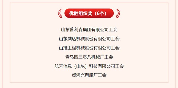 近日,全省国防机械电子行业职工代表提案评选结果正式揭晓,山推一举斩获两项荣誉——《关于山推职工之家建设的提案》荣获职工代表提案三等奖,公司工会荣获职工代表提案优胜组织奖。山推在职工民主管理与服务体系建设中扎实成效的优秀做法得到推广,提升了山推在行业内的美誉度和公信力。