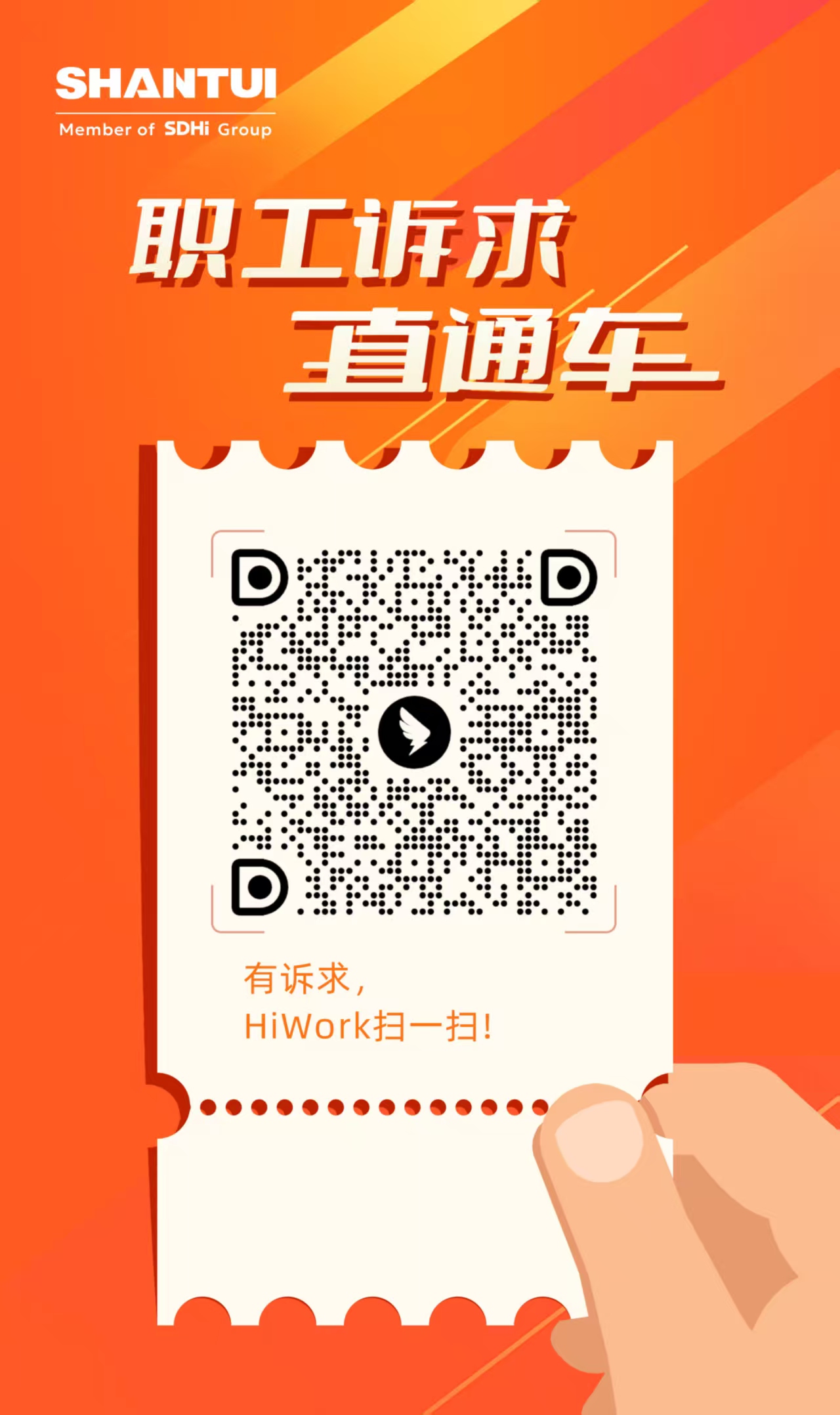 “职工诉求直通车”依托数字化赋能,打破时空限制,职工通过手机Hiwork扫码即可随时随地提交诉求,涵盖薪酬福利、职业发展、后勤保障等多个领域,实现诉求“一键直达”,让职工发声更便捷。